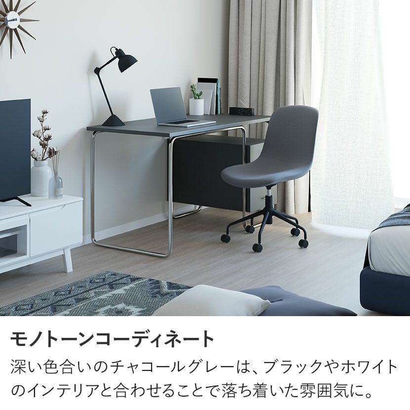 深い色合いのチャコールグレーは、ブラックやホワイトのインテリアと合わせることで落ち着いた雰囲気に。