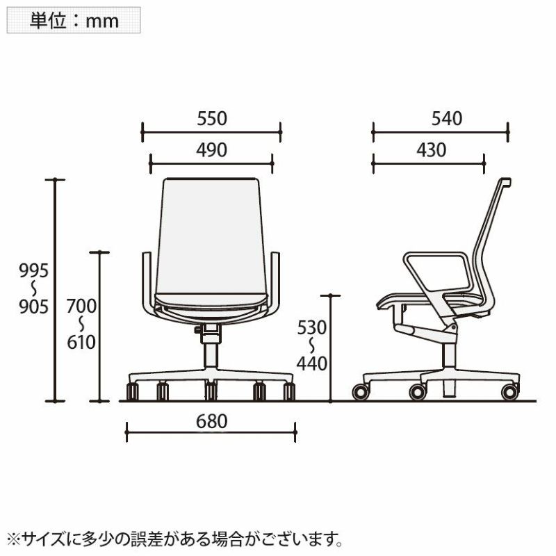 | サイズ(その他) | 座面 / 幅490×奥行430mm 座面高さ / 440~530mm 肘高さ / 610~700mm |