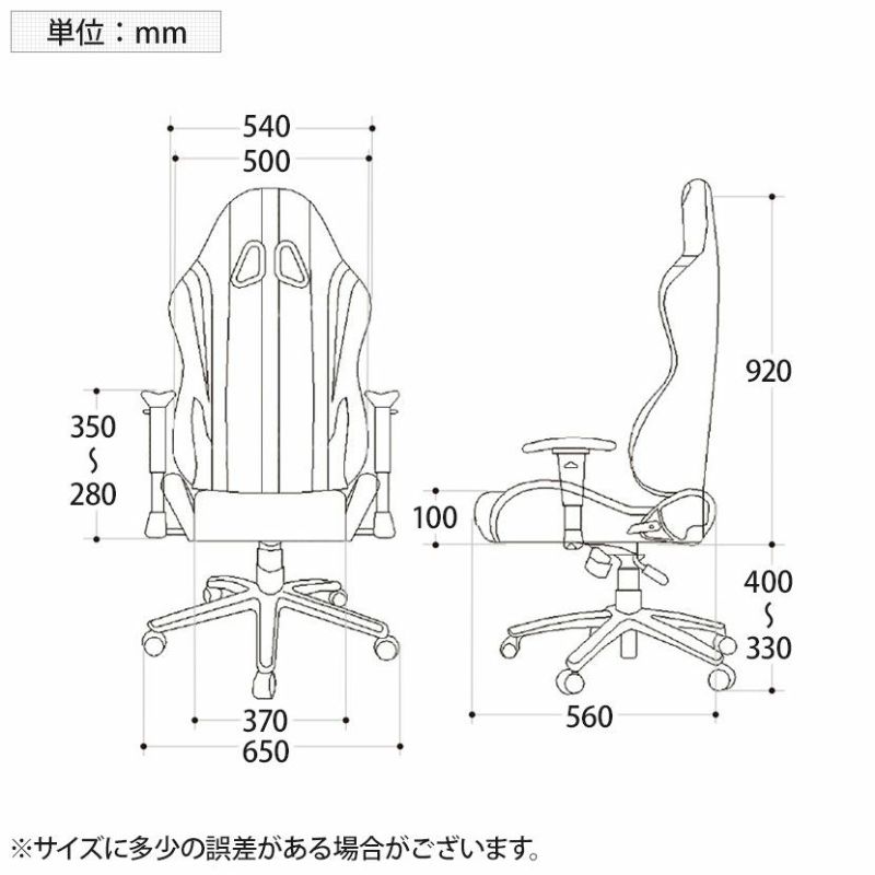 サイズ(その他) | 座面 / 幅370×奥行560×高さ330~400mm 座面厚さ / 100mm 背もたれ高さ / 920mm アームレスト高さ / 280~350mm |