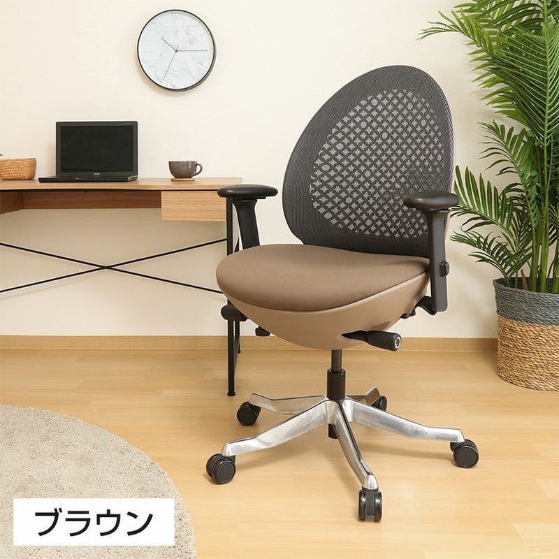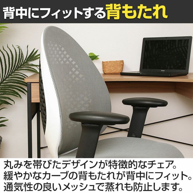 ・緩やかなカーブの背もたれが背中にフィット。通気性の良いメッシュ素材で蒸れも防止します。