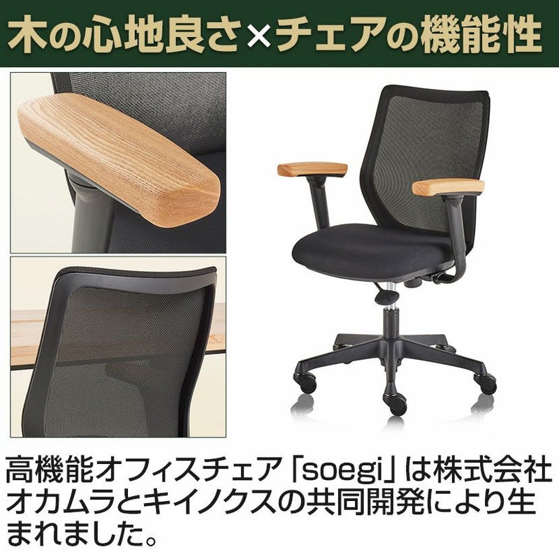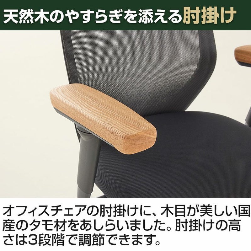 | 材質 | 本体 / スチール + 樹脂成型品 背面 / メッシュ 座面 / 異硬度クッション 肘 / 国産タモ材 キャスター / ゴム、ナイロン |