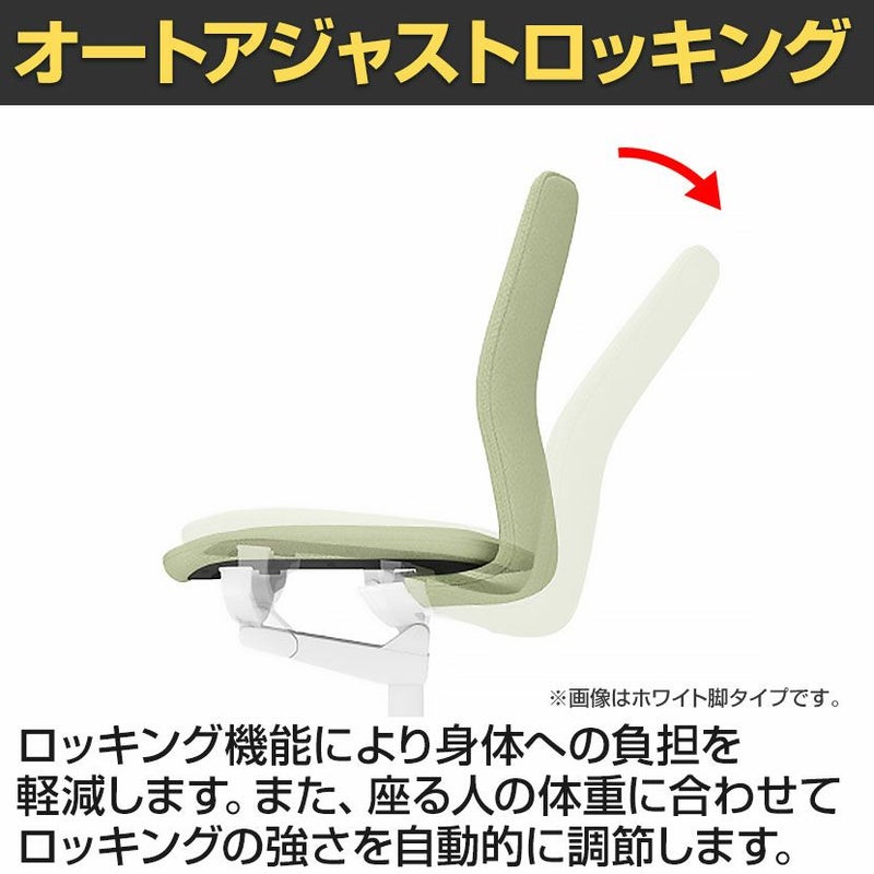 | 機能・特徴 | ・座面高さ調節 ・ロッキング調節 反力切り替えと角度固定が可能です。 ・オートアジャストロッキング 体重に合わせてロッキングの強さを自動的に調節します。 |