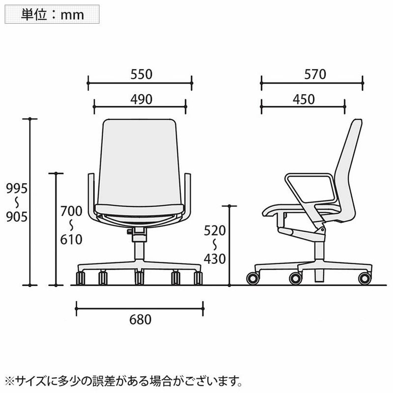 | サイズ(その他) | 座面 / 幅480×奥行450mm 座面高さ / 430~520mm 肘高さ / 610~700mm |