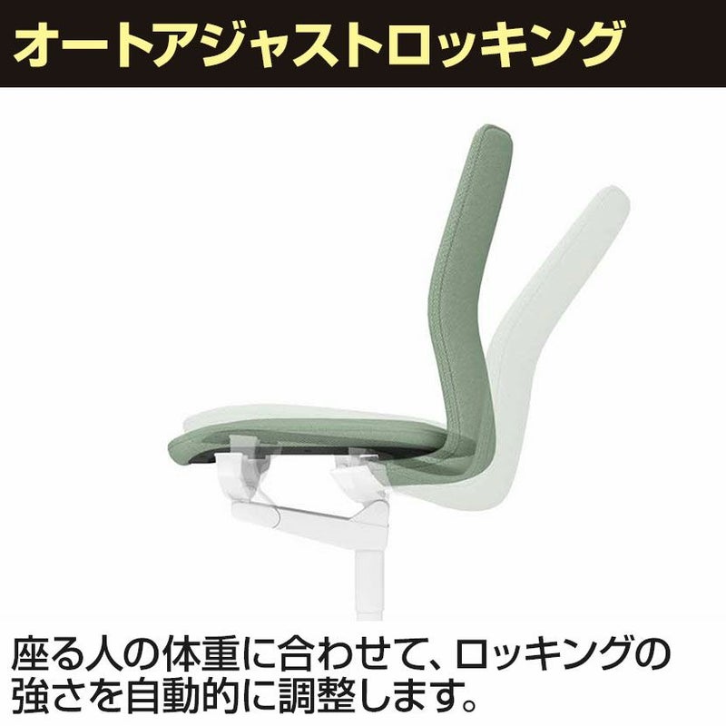 | 機能・特徴 | ・座面高さ調整 ・ロッキング調整 反力切り替えと角度固定が可能です。 ・オートアジャストロッキング 体重に合わせてロッキングの強さを自動的に調整します。 ・張地タイプ / メッシュ |