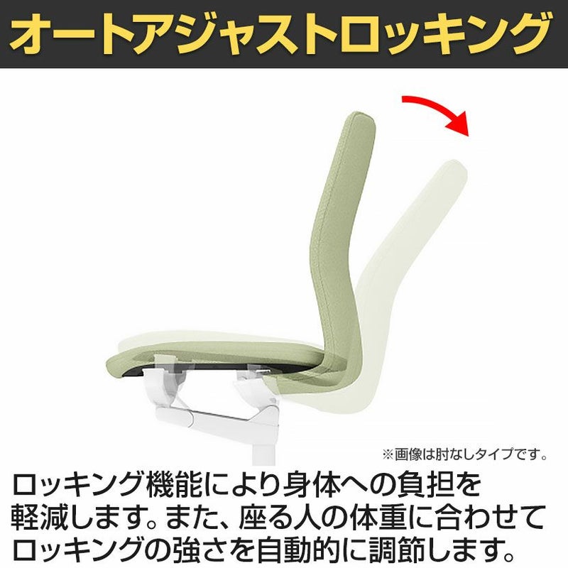 | 機能・特徴 | ・座面高さ調節 ・ロッキング調節 反力切り替えと角度固定が可能です。 ・オートアジャストロッキング 体重に合わせてロッキングの強さを自動的に調整します。 |