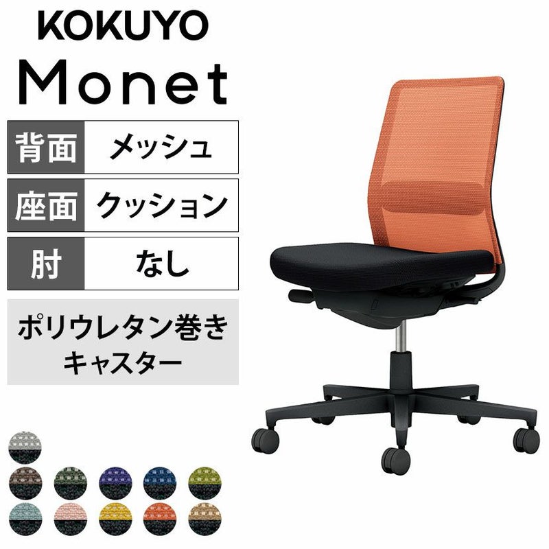 【設置無料】 ワークチェア モネット Monet オフィスチェア 肘なし 樹脂脚 ウレタンキャスター ランバーサポート付き 背メッシュ 座面布張り 背座別色(背色選択/座ブラック) 本体/脚ブラック C03-B102U コクヨ 椅子