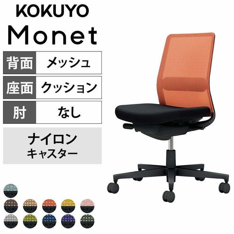 【設置無料】オフィスチェア モネット Monet 背メッシュタイプ 背座別色 背色選択タイプ 肘なし ショルダーサポートなし ランバーサポートあり 脚ブラック 本体ブラック 座ブラック ナイロンキャスター C03-B102W | コクヨ オフィスチェア