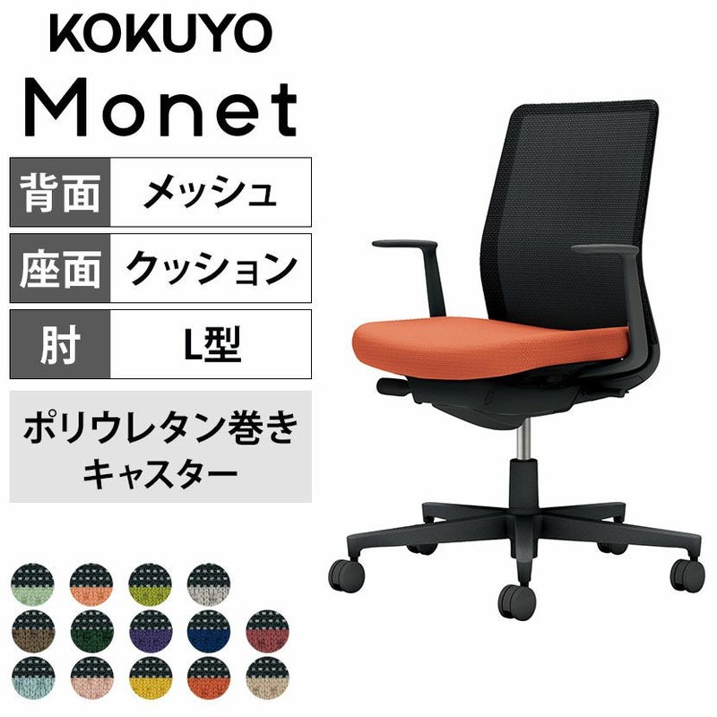 【設置無料】 ワークチェア モネット Monet オフィスチェア L字肘(固定肘) 樹脂脚 ウレタンキャスター 背メッシュ 座面布張り 背座別色(座色選択/背ブラック) 本体/脚ブラック C03-B110U コクヨ 椅子