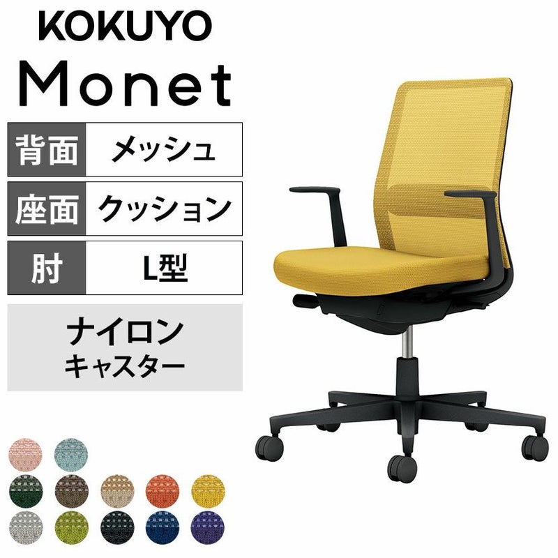 【設置無料】オフィスチェア モネット Monet 背メッシュタイプ 背座同色 L型肘 ショルダーサポートなし ランバーサポートあり 脚ブラック 本体ブラック ナイロンキャスター C03-B112W | コクヨ オフィスチェア