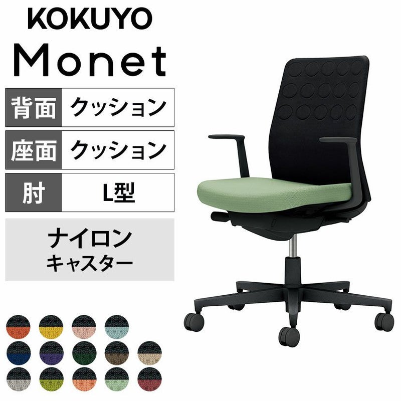 【設置無料】オフィスチェア モネット Monet 背クッションタイプ 背座別色 座色選択タイプ L型肘 ショルダーサポートなし ランバーサポートなし 脚ブラック 本体ブラック 背ブラック ナイロンキャスター C03-B210W | コクヨ オフィスチェア