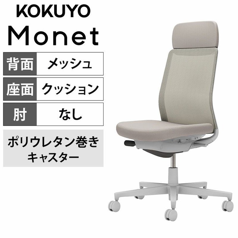 【設置無料】 ワークチェア モネット Monet オフィスチェア 肘なし ハイバック 樹脂脚 ウレタンキャスター ショルダーサポート付き 背メッシュ 座面布張り 背座同色(ライトグレー) 本体/脚ライトグレー C03-G101U-GE2E2X1 コクヨ 椅子