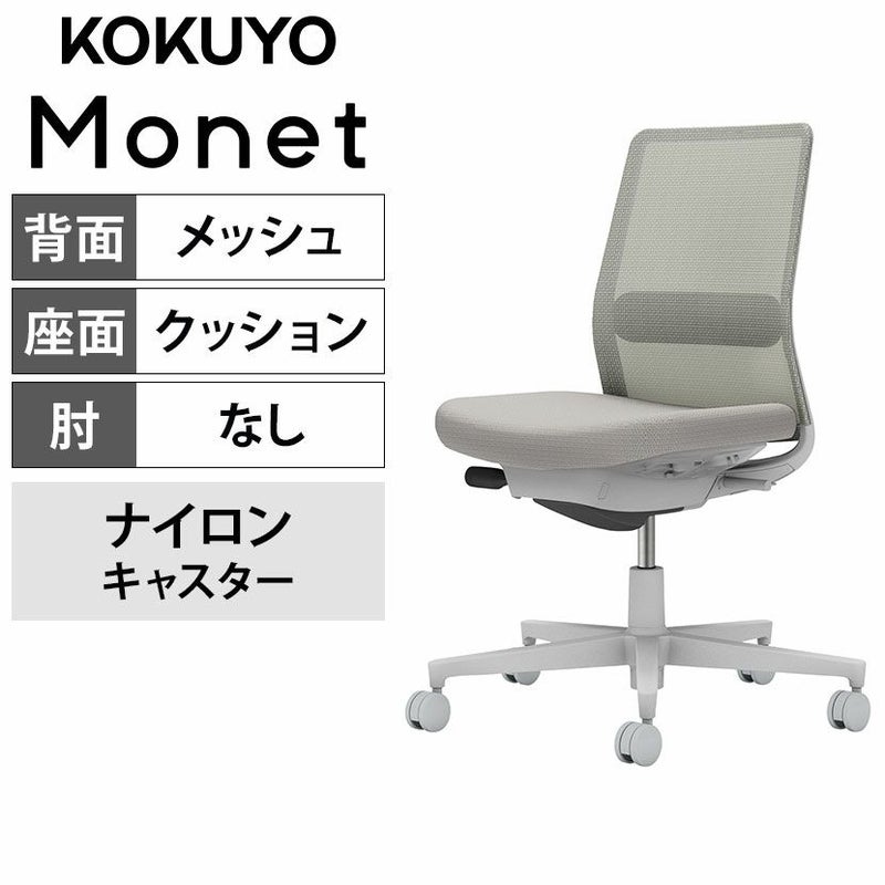【設置無料】 ワークチェア モネット Monet オフィスチェア 肘なし 樹脂脚 ナイロンキャスター ランバーサポート付き(ライトグレー) 背メッシュ 座面布張り 背座同色(ライトグレー) 本体/脚ライトグレー C03-G102W-GE2E2E21 コクヨ 椅子