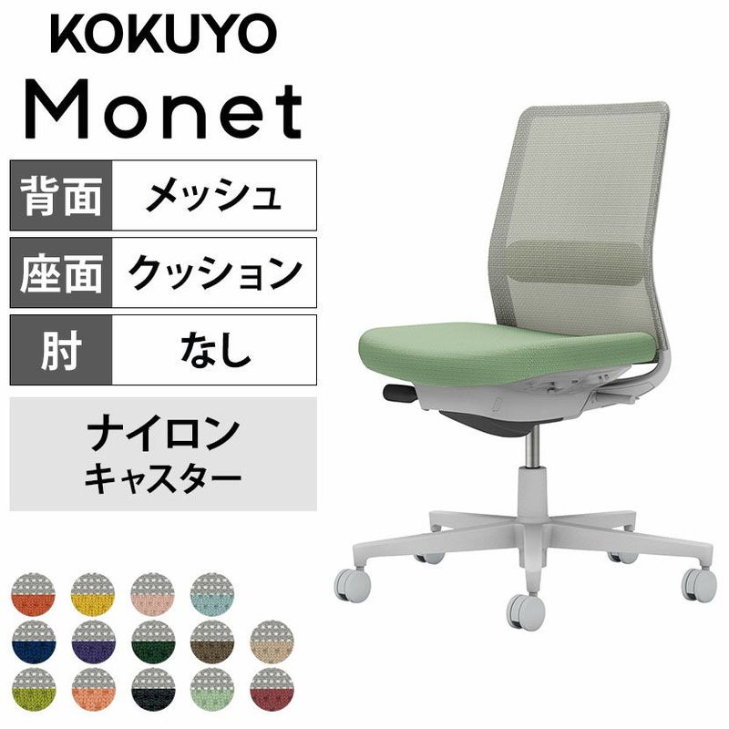 【設置無料】オフィスチェア モネット Monet 背メッシュタイプ 背座別色 座色選択タイプ 肘なし ショルダーサポートなし ランバーサポートあり 脚ライトグレー 本体ライトグレー 背ライトグレー ナイロンキャスター C03-G102W | コクヨ オフィスチェア