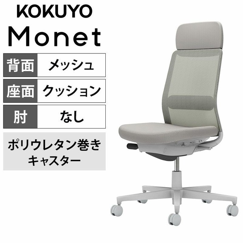 【設置無料】 ワークチェア モネット Monet オフィスチェア 肘なし ハイバック 樹脂脚 ウレタンキャスター ショルダーサポート付き ランバーサポート付き(ライトグレー) 背メッシュ 座面布張り 背座同色(ライトグレー) 本体/脚ライトグレー C03-G103U-GE2E2E21 コクヨ 椅子