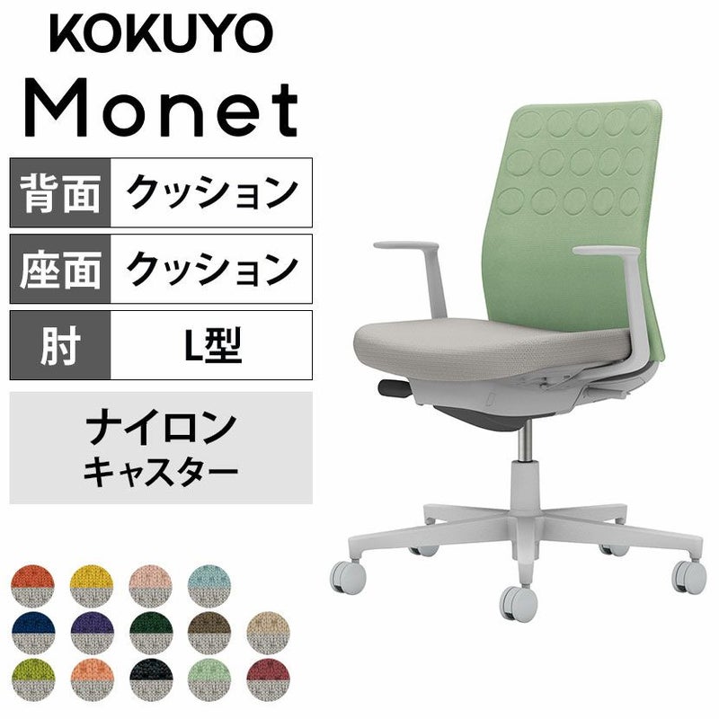 【設置無料】オフィスチェア モネット Monet 背クッションタイプ 背座別色 背色選択タイプ L型肘 ショルダーサポートなし ランバーサポートなし 脚ライトグレー 本体ライトグレー 座ライトグレー ナイロンキャスター C03-G210W | コクヨ オフィスチェア