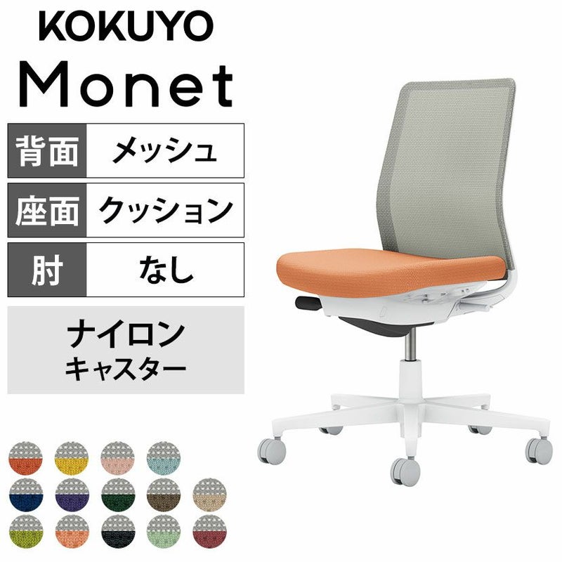 【設置無料】オフィスチェア モネット Monet 背メッシュタイプ 背座別色 座色選択タイプ 肘なし ショルダーサポートなし ランバーサポートなし 脚ホワイトグレー 本体ホワイトグレー 背ライトグレー ナイロンキャスター C03-W100W | コクヨ オフィスチェア