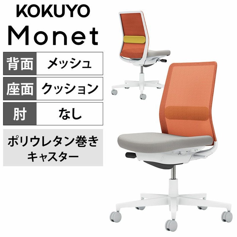 【設置無料】 ワークチェア モネット Monet オフィスチェア 肘なし 樹脂脚 ウレタンキャスター ランバーサポート付き(オリーブイエロー) 背メッシュ 座面布張り 本体/脚ホワイトグレー 背ソフトテラコッタ 座ライトグレー C03-W102U-WE20T1S1 コクヨ 椅子