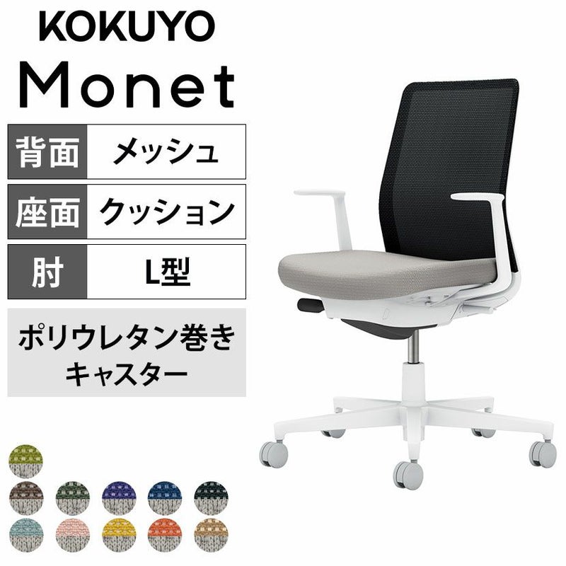 【設置無料】 ワークチェア モネット Monet オフィスチェア L字肘(固定肘) 樹脂脚 ウレタンキャスター 背メッシュ 座面布張り 背座別色(背色選択/座ライトグレー) 本体/脚ホワイトグレー C03-W110U コクヨ 椅子