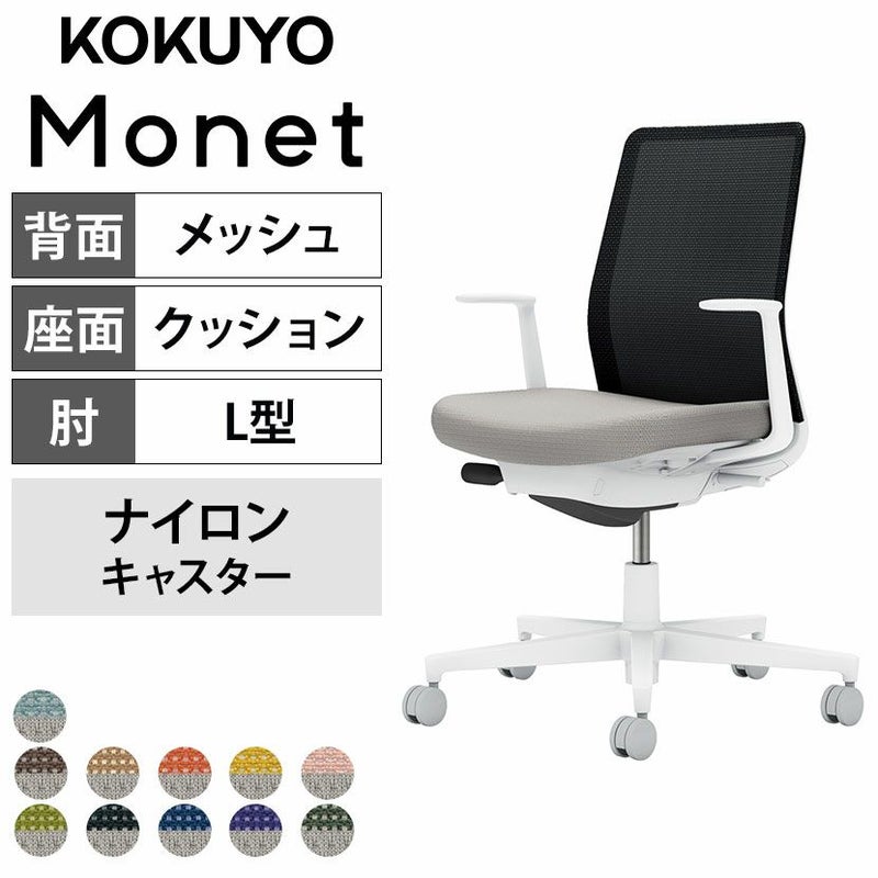 【設置無料】オフィスチェア モネット Monet 背メッシュタイプ 背座別色 背色選択タイプ L型肘 ショルダーサポートなし ランバーサポートなし 脚ホワイトグレー 本体ホワイトグレー 座ライトグレー ナイロンキャスター C03-W110W | コクヨ オフィスチェア