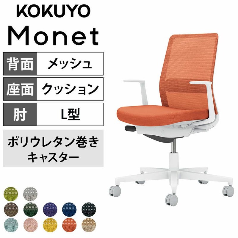 【設置無料】 ワークチェア モネット Monet オフィスチェア L字肘(固定肘) 樹脂脚 ウレタンキャスター ランバーサポート付き 背メッシュ 座面布張り 背座同色 本体/脚ホワイトグレー C03-W112U コクヨ 椅子