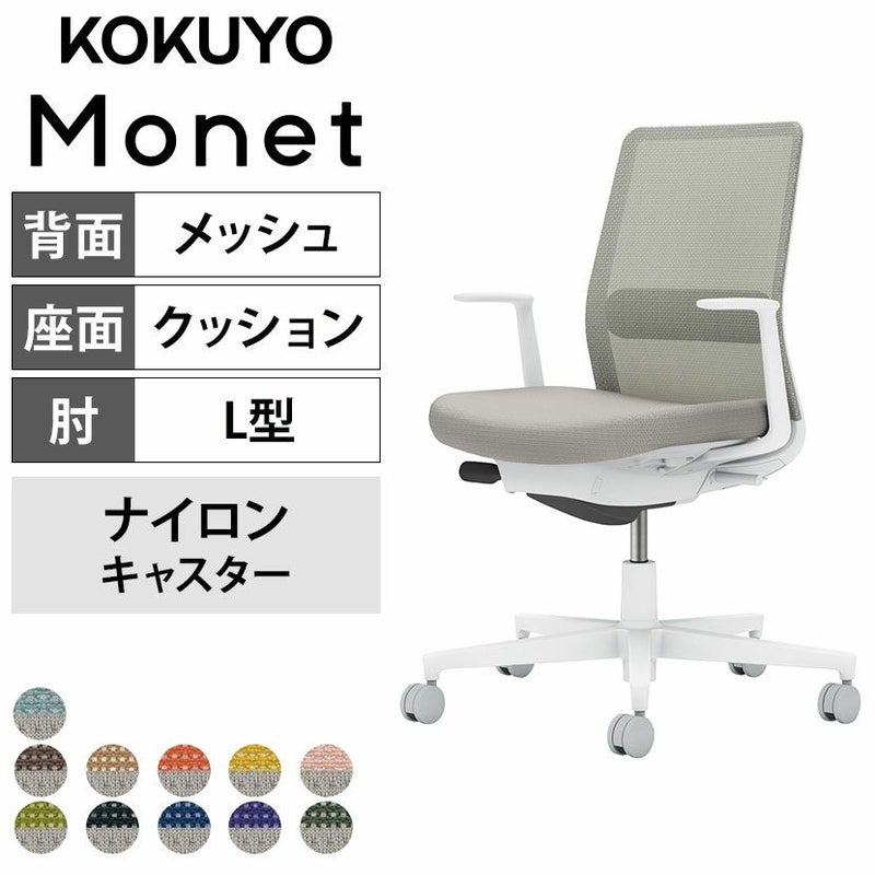【設置無料】オフィスチェア モネット Monet 背メッシュタイプ 背座別色 背色選択タイプ L型肘 ショルダーサポートなし ランバーサポートあり 脚ホワイトグレー 本体ホワイトグレー 座ライトグレー ナイロンキャスター C03-W112W | コクヨ オフィスチェア