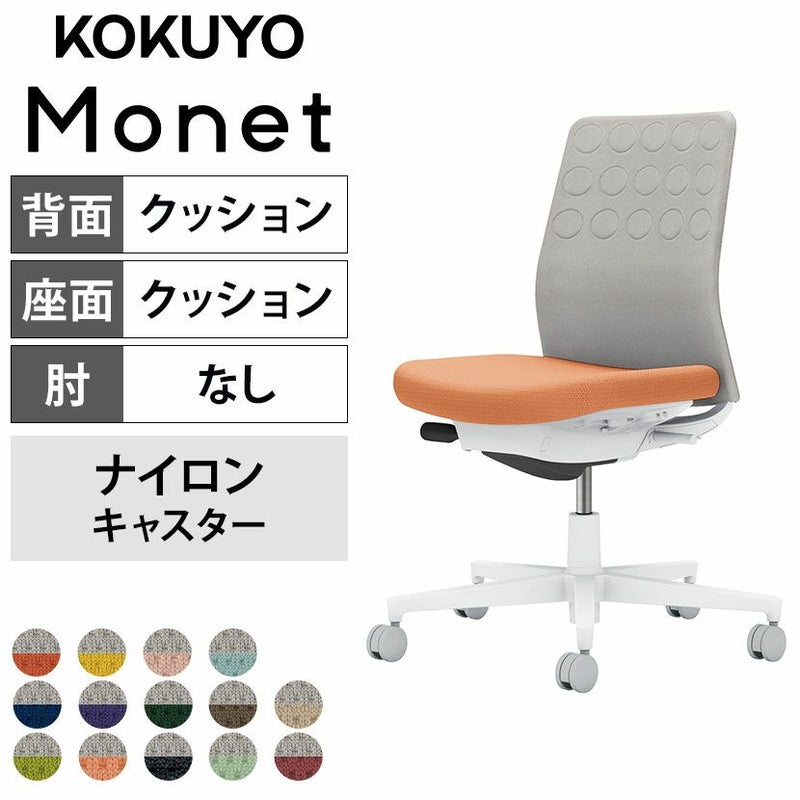 【設置無料】オフィスチェア モネット Monet 背クッションタイプ 背座別色 座色選択タイプ 肘なし ショルダーサポートなし ランバーサポートなし 脚ホワイトグレー 本体ホワイトグレー 背ライトグレー ナイロンキャスター C03-W200W | コクヨ オフィスチェア