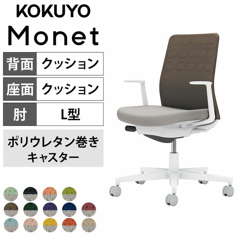 【設置無料】オフィスチェア モネット Monet 背クッションタイプ 背座別色 背色選択タイプ L型肘 ショルダーサポートなし ランバーサポートなし 脚ホワイトグレー 本体ホワイトグレー 座ライトグレー ポリウレタン巻きキャスター C03-W210U | コクヨ オフィスチェア