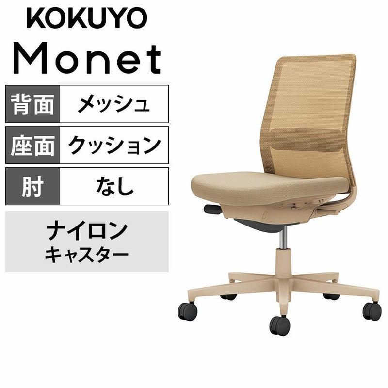 【設置無料】 ワークチェア モネット Monet オフィスチェア 肘なし 樹脂脚 ナイロンキャスター ランバーサポート付き 背メッシュ 座面布張り 背座同色(ソフトベージュ) 本体/脚ソフトベージュ C03-Z102W-Z1KYK1K1 コクヨ 椅子
