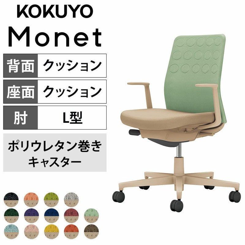 【設置無料】オフィスチェア モネット Monet 背クッションタイプ 背座別色 背色選択タイプ L型肘 ショルダーサポートなし ランバーサポートなし 脚ソフトベージュ 本体ソフトベージュ 座ソフトベージュ ポリウレタン巻きキャスター C03-Z210U | コクヨ オフィスチェア