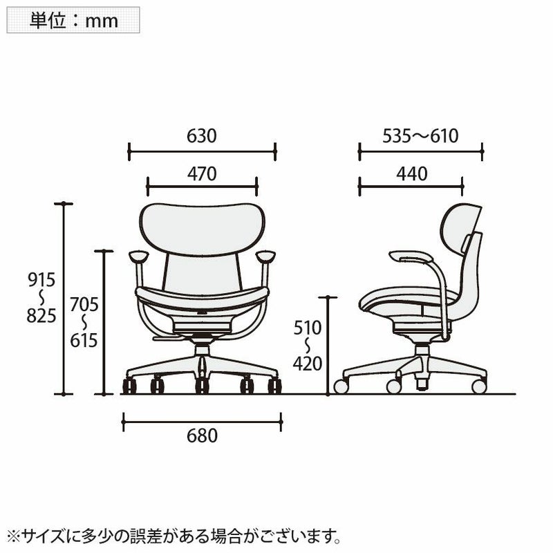 | サイズ(その他) | 肘高さ / 615~705mm 座面 / 幅470×奥行440mm 座面高さ / 420~510mm |