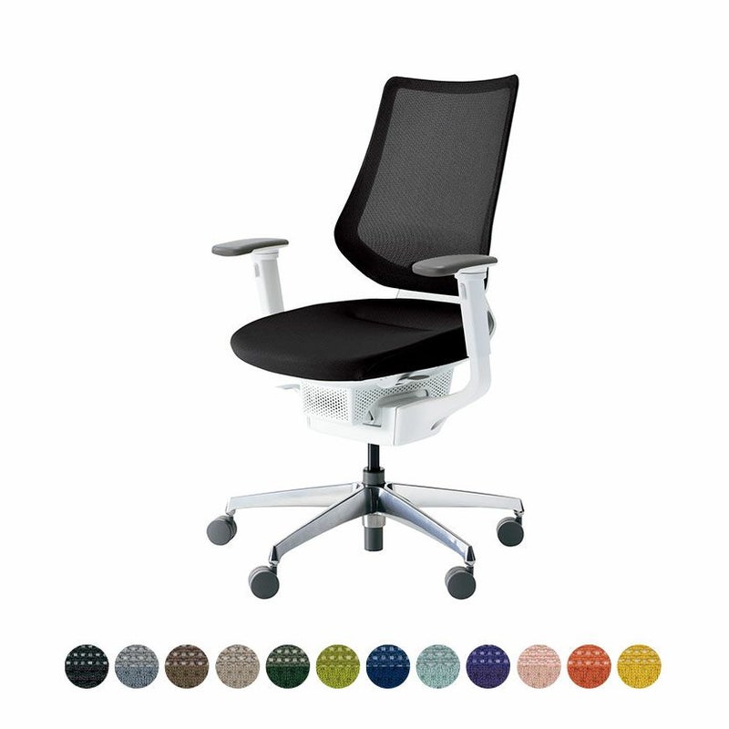 | 材質 | 背枠 / 強化ナイロン 張り地 / ポリエステル弾性メッシュ 座板 / ポリプロピレン 座張り地 / ポリエステル 座クッション / モールドウレタン 肘 / 強化ナイロン、ポリウレタンスキンモールド 脚羽根 / アルミダイカスト(磨き仕上げ) |