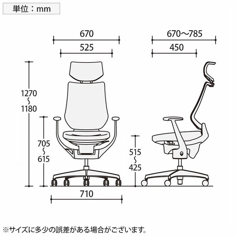 | サイズ(その他) | 座面 / 幅525×奥行450mm 肘高さ / 615~705mm 座面高さ / 425~515mm |