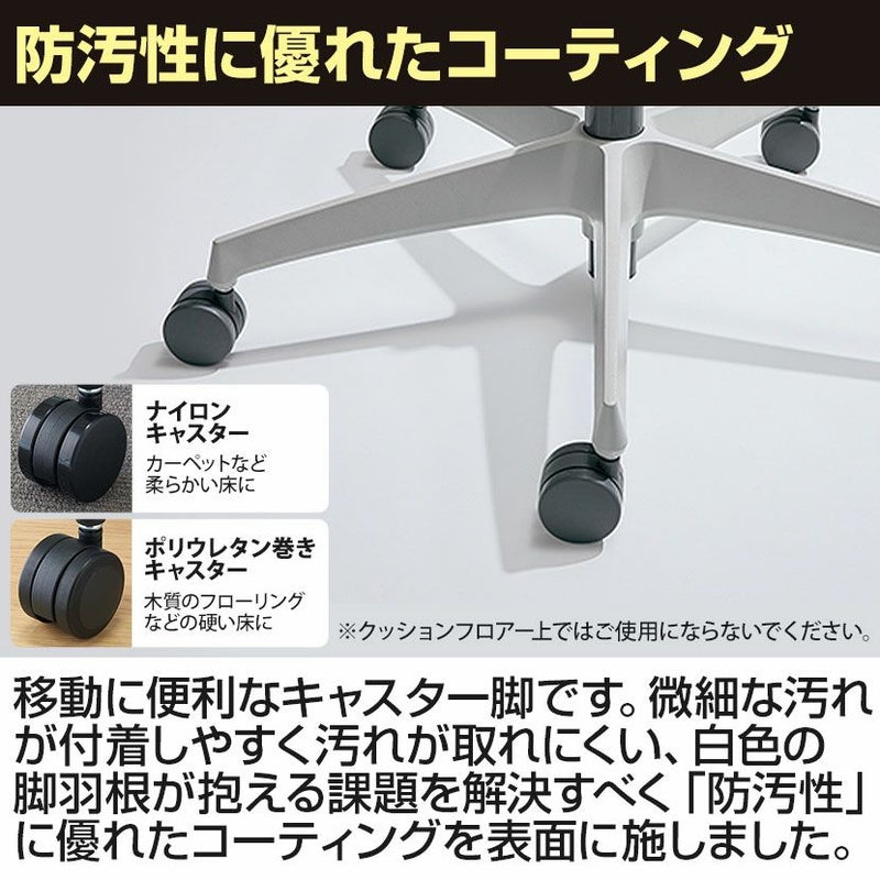 | 材質 | 背板・座板 / ポリプロピレン 張り地 / ポリエステル 背クッション / スラブウレタン 座クッション / モールドウレタン 肘 / 強化ナイロン、ポリウレタンスキンモールド 脚羽根 / 強化ナイロン |