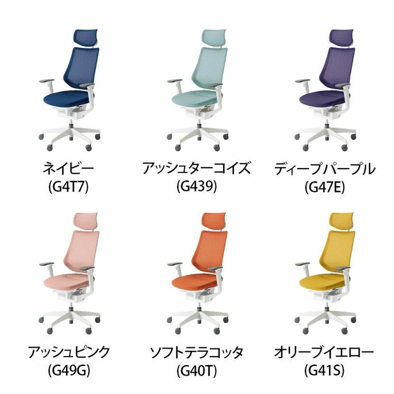 | 材質 | 背枠 / 強化ナイロン 張り地 / ポリエステル弾性メッシュ 座板 / ポリプロピレン 座張り地 / ポリエステル 座クッション / モールドウレタン 肘 / 強化ナイロン、ポリウレタンスキンモールド 脚羽根 / 強化ナイロン |