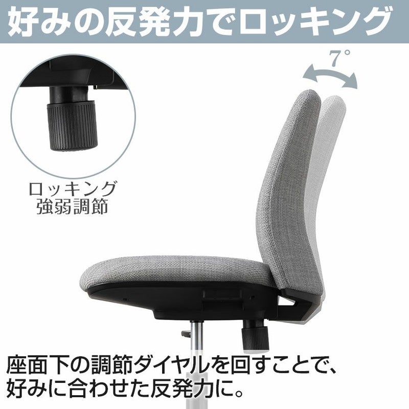座面下の調節ハンドルを回すことでロッキング反発力を調節できます。