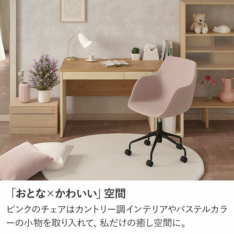 ピンクのチェアはカントリー調インテリアやパステルカラーの小物を取り入れて、私だけの癒し空間に。