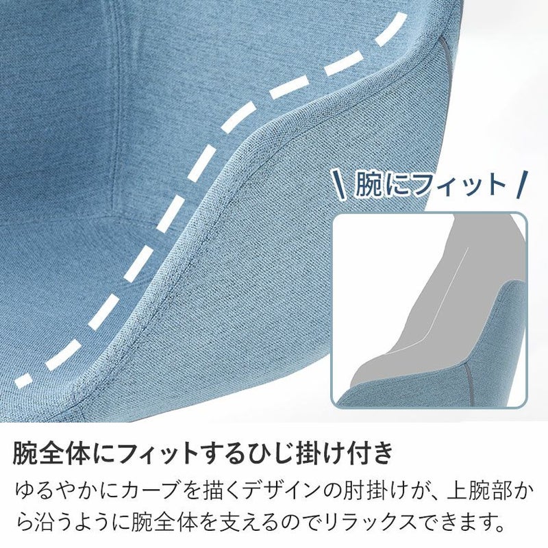 ゆるやかにカーブを描くデザインの肘掛けが、上腕部から沿うように腕全体を支えるのでリラックスできます。