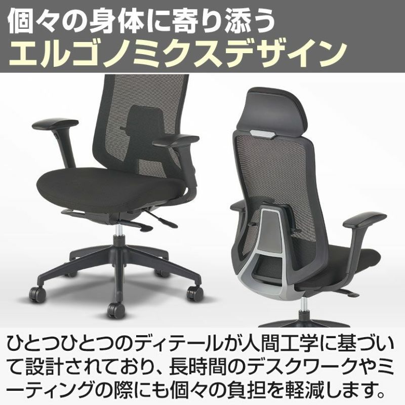 オフィスチェア AE-1 ブラックフレーム ヘッドレスト付き ランバーサポート 椅子 肘掛け リクライニング チェア 人間工学 ロッキング メッシュチェア おしゃれ