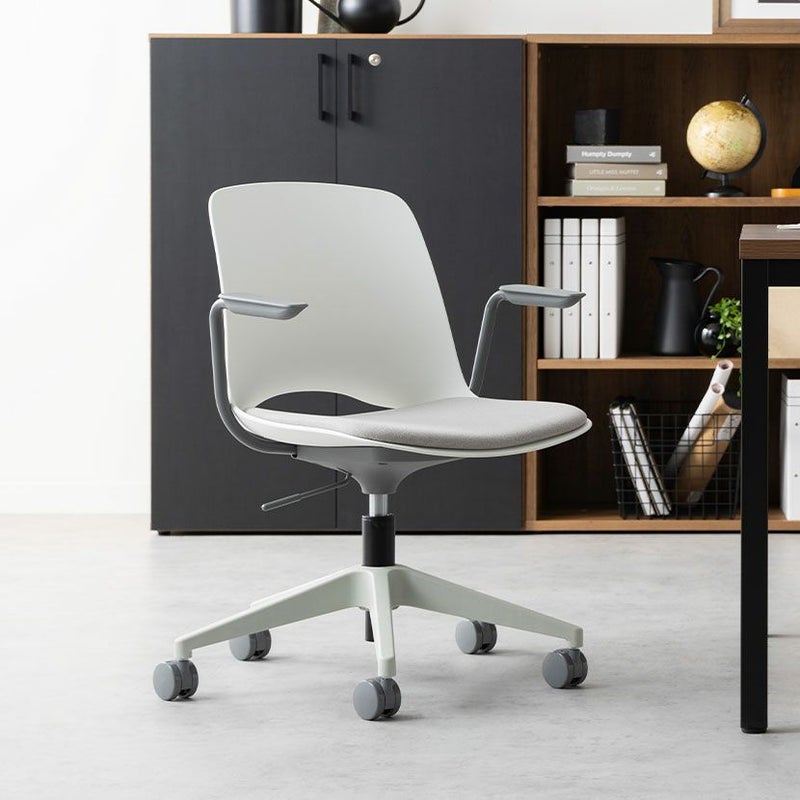 背もたれから座面にかけての流れるようなシルエットが、やわらかでスマートな雰囲気を演出。