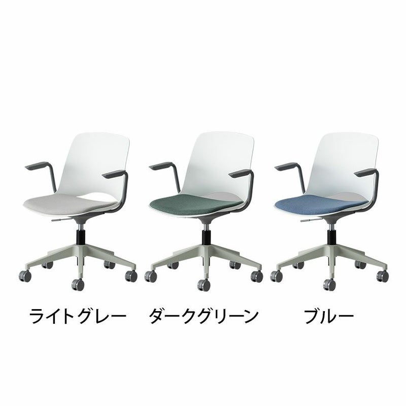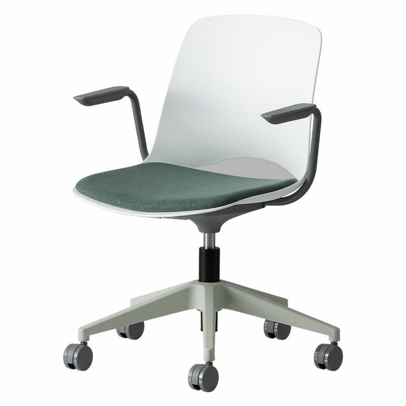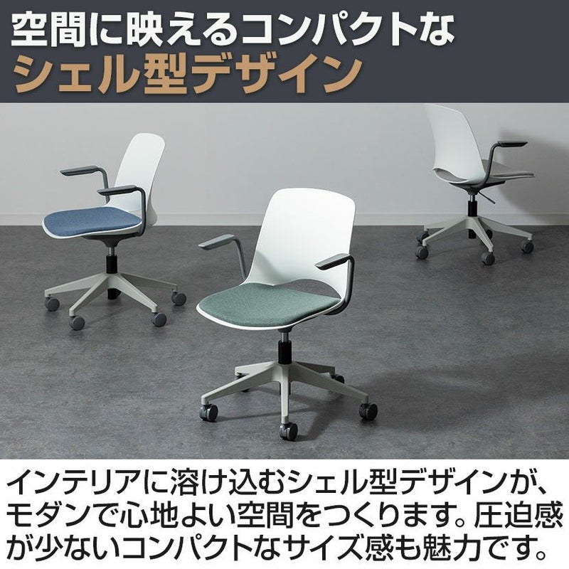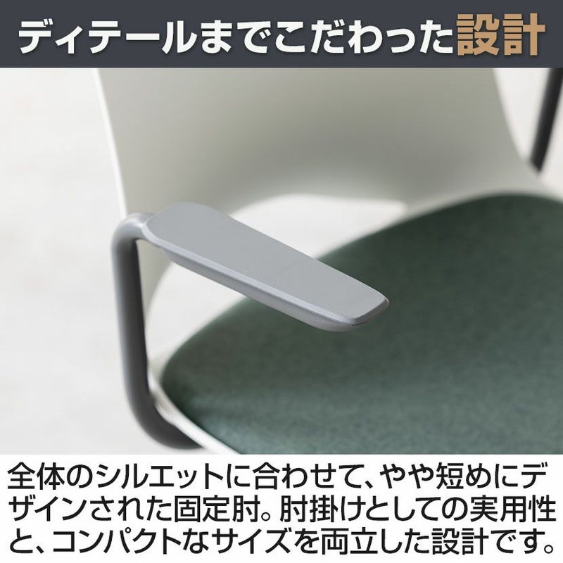 チェア全体のシルエットに合わせて、やや短めにデザインされた固定肘。