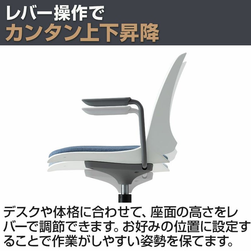デスクや体格に合わせて、座面の高さをレバー調節できます。