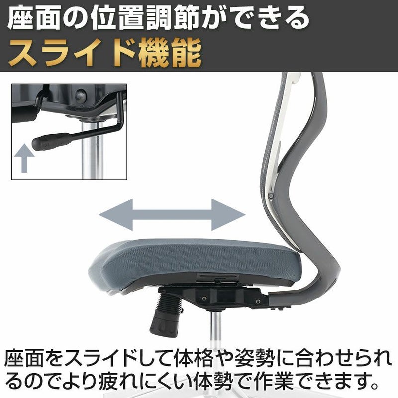 座面をスライドして体格や姿勢に合わせられるので、より疲れにくい体勢で作業できます。