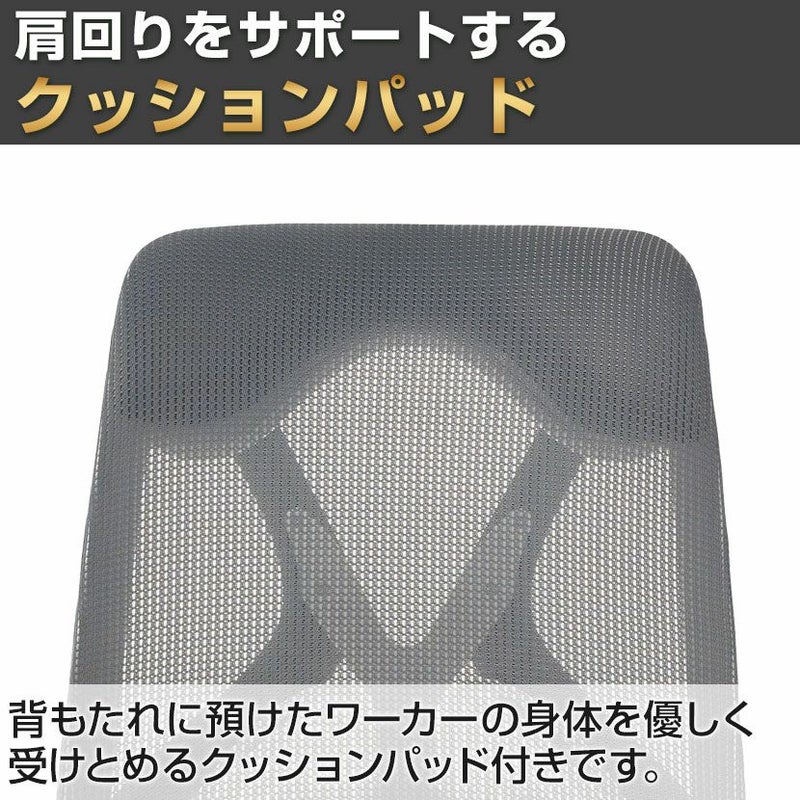 背もたれに預けたワーカーの身体を優しく受け止めるクッションパッド付きです。