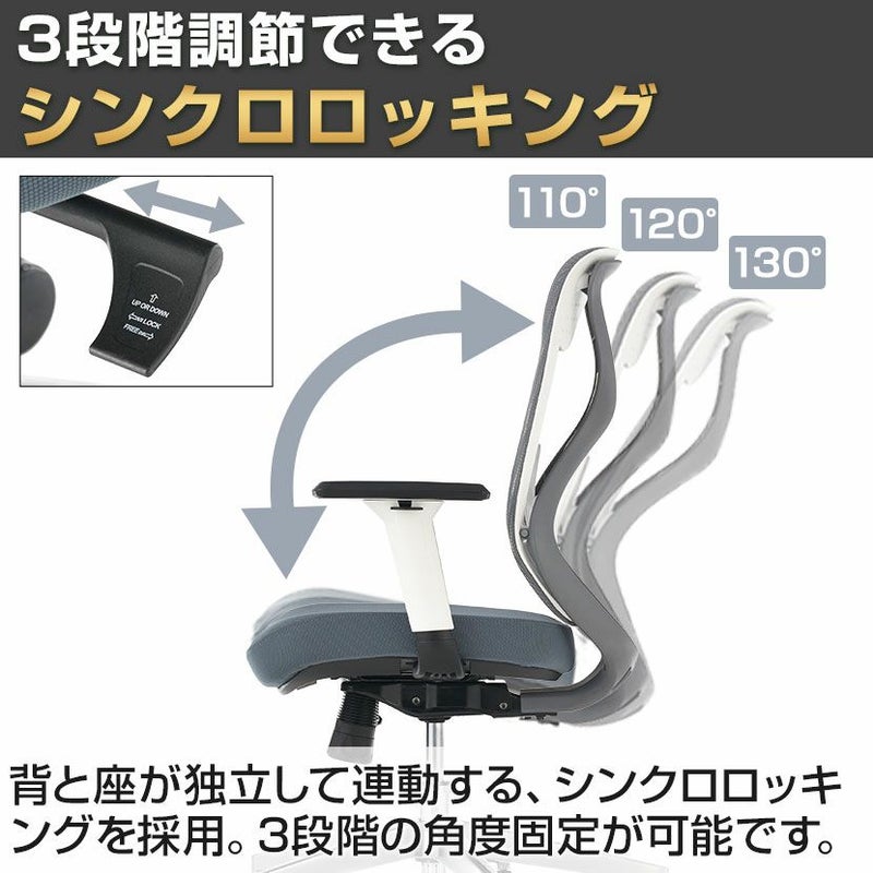 背と座が独立して連動する、シンクロロッキングを採用。