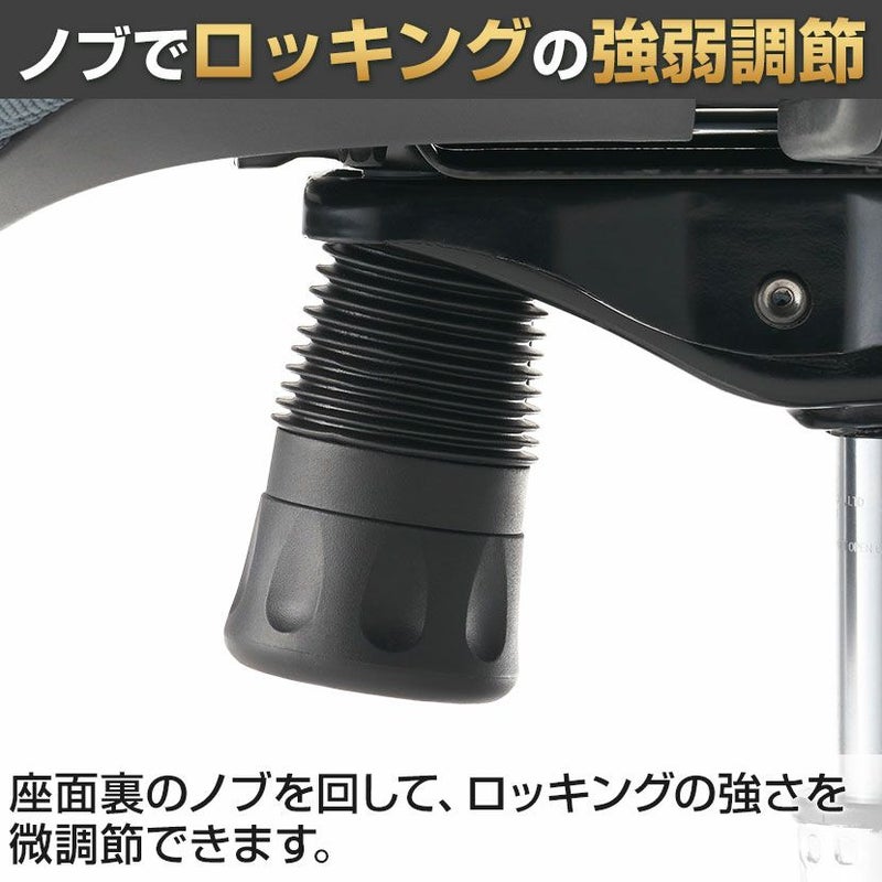 座面裏のノブを回して、ロッキングの強さを微調節できます。