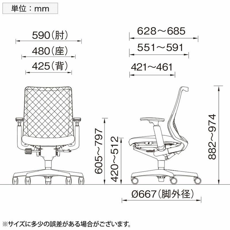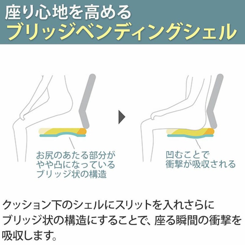 | 備考 | ・ラウンドフィットバック メッシュが身体に合わせて変形し、優しく包み込まれるような座り心地が感じられます。 ・異硬度クッション 座面前方は太ももを圧迫しないように柔らかく、後方はお尻をしっかりサポートする硬めのクッションを採用。 ・ブリッジベンディングシェル クッション下のシェルにスリットを入れさらにブリッジ状の構造にすることで座る瞬間の衝撃を吸収。 ・グリーン購入法適合商品 |