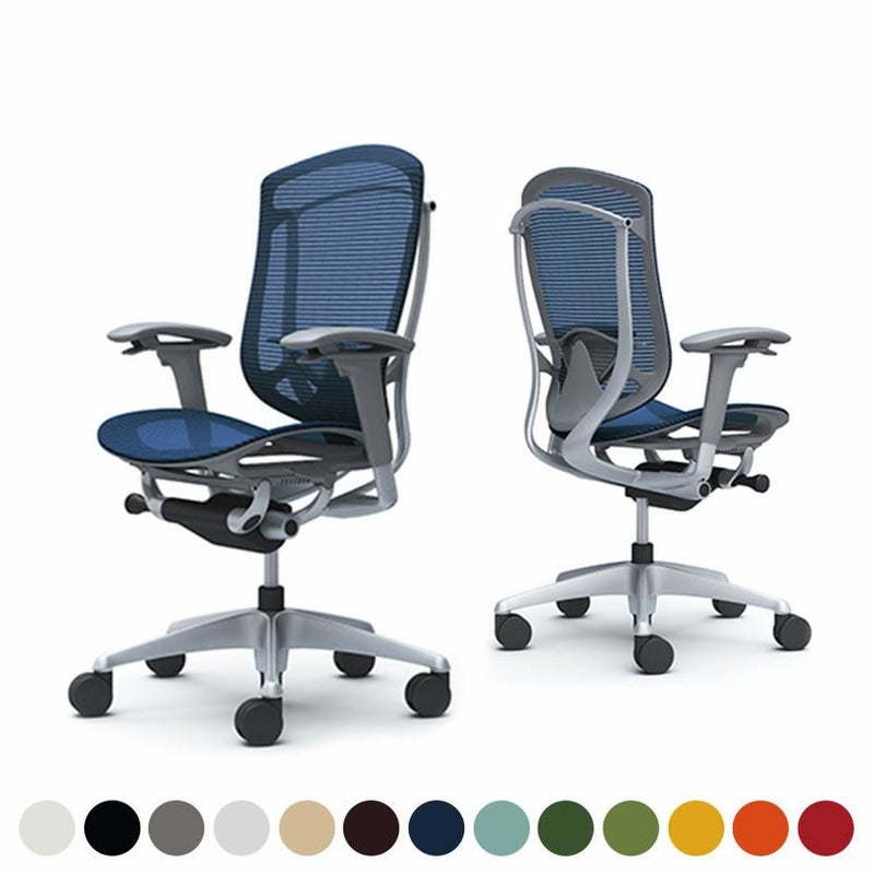 CC81YE | コンテッサ セコンダ Contessa II 2 ハイバック 座メッシュ アジャストアーム シルバーフレーム グレーボディ ランバーサポート付き ウレタンキャスター (オカムラ)