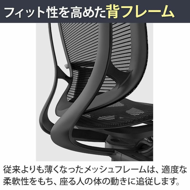 | 材質 | 背フレーム / アルミダイキャスト 背メッシュフレーム / 樹脂成型品 可動肘 / アルミダイキャスト、スチールパイプ、樹脂成型品 座 / 樹脂成型品 脚・支基 / アルミダイキャスト キャスター / 直径75mmナイロン双輪キャスターまたは、直径75mmウレタン双輪キャスター |