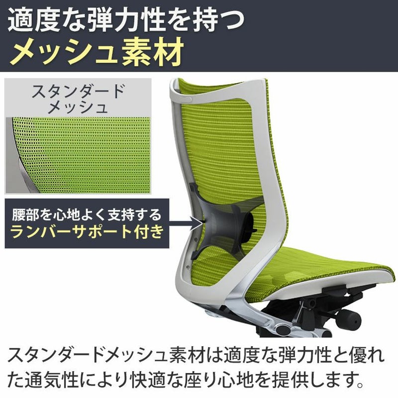 CP35AZ | バロン ハイバック 座メッシュ 肘なし ポリッシュフレーム ホワイトボディ ランバーサポート付 オカムラ