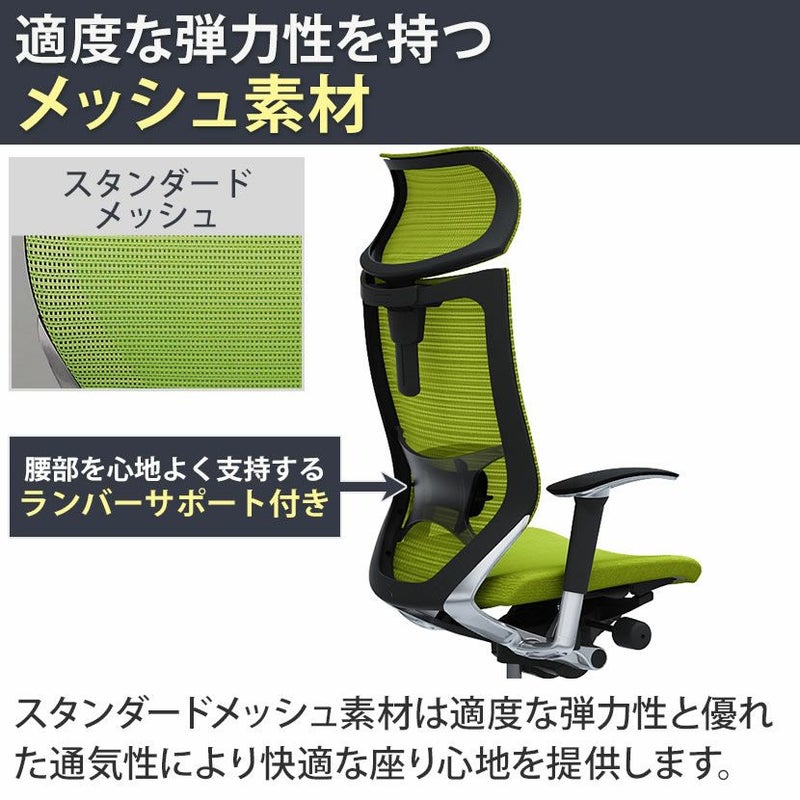 | 備考 | ・ランバーサポート付き(上下5段階(50mm)調節可能) ・スタンダードメッシュ 適度な弾力性と優れた通気性により、長時間でも快適な座り心地を実現します。 ・グリーン購入法適合商品 |
